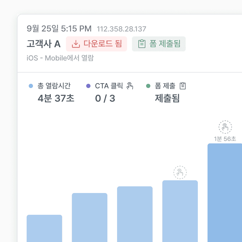 파일을 받아보는 분들에게 더 좋은 경험을 제공하고, 고객의 관심사와 관심도를 신속히 파악할 수 있었습니다.
