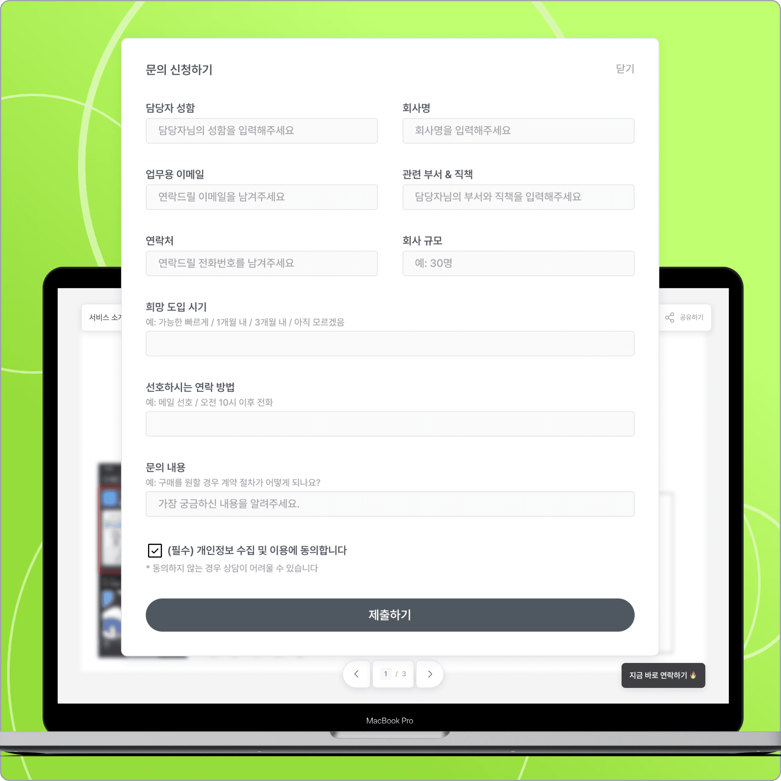 개발자 없이도 내용과 문의 양식을 실시간으로 수정 및 반영